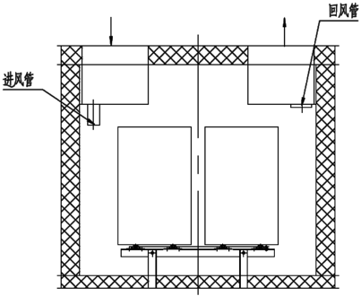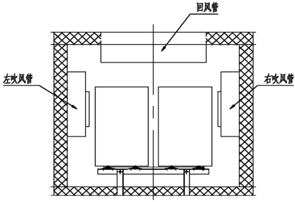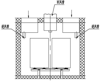 根据图11情况分析,加热能源采用天然气或石油液化气加热,加热室分布位置均布,进风形式为单面上吹风,单面上回风,没有风口调整装置,而且没有调风系统。