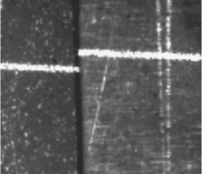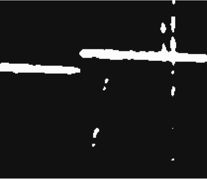 这样,图像与运算后可以滤去由于引弧飞溅等引起的随机噪声的干扰,而条纹有一定的宽度,不会对线位置识别造成较大影响。