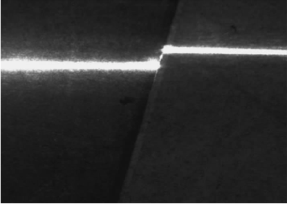 由图1中可以看出,线结构光打在焊接工件上,由于搭接引起的高度差值会使分别打在焊板上的两段结构光呈平行状态,需要找到焊接特征点即2条平行线的跳变点。