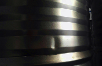 二、钢板本身的材质软化易造成桶磕碰后的凹痕