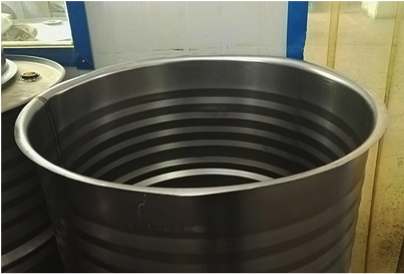4道大波纹钢桶的结构改进,使包装钢桶外形更富于力感,更具有视觉冲击效果,同时也符合用户对包装钢桶的要求。极大的提升了包装钢桶的内在质量及外观形象,弥补了原标准桶形的一些缺陷。