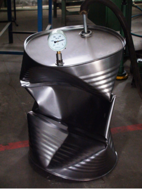 4道大波纹的钢桶负压试验