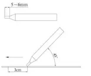 ③将样板放置在水平的台面上,涂膜向上固定,手持铅笔约成45°角,以铅笔芯不折断为度,在涂膜面上推压,向试验者前方以均匀的、约1cm/s的速度推压约3cm,如图1所示;