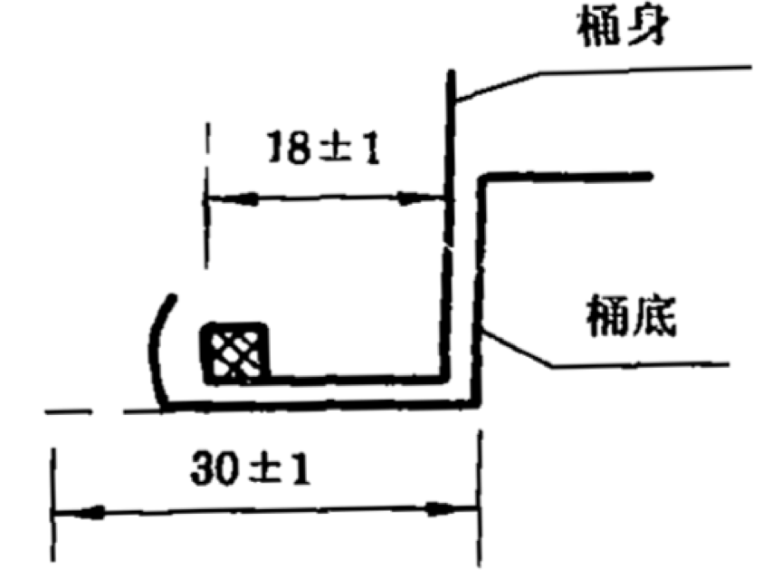 国标GB/T 325中200升闭口钢桶是桶身与桶顶、桶底卷边而成型的,在填充料(密封胶)不变的情况下,卷边的形状不同,钢桶强度也不同,我厂参照国标GB/T 325生产的钢桶卷边有两种形式,第一种形式为平卷边,第二种形式为圆卷边,如放大图(图1、图2)。
