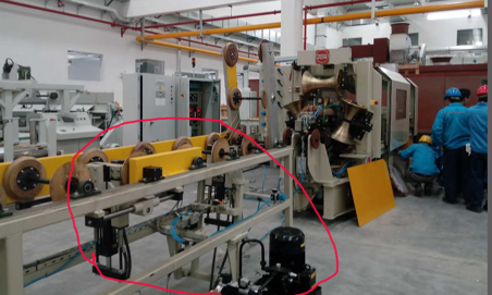 正在调试中的英联邦钢桶缝焊机机头和控制系统