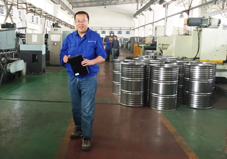 唐茂强总经理非常和霭谦卑,他对工作不丝不苟,对所有事都认真细微,自己深入基层,掌握第一手资料。您看图中他是否象个工程师向我们走来。记得我们第一次见面是2010年在云南丽江的钢桶年会上,他自己向我介绍说,他是烟台统一新来的技术员,我还真以为他是新来的工程师。他当时说想上一套新的钢桶生产线,问国内各家设备情况及钢桶设备国际发展水平和行业的前景等。我们聊了许多,他非常认真和专业。多年过去了,他还保持原来的工作作风,运筹帷幄。目前他除了做好金属包装和塑料包装类产品外,已经把产品延伸到皮革等包装领域,企业飞速发展。