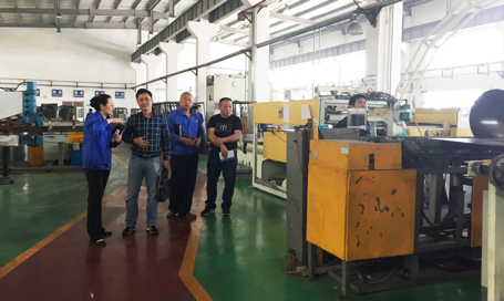 副总经理陈艳霞女士向何总(新安包装)介绍企业情况,公司引进国外具有世界先进水平的全自动钢桶生产线,生产能力达300~400只/小时。冲压线采用联合错位冲压机组,实现了松板、压平、剪切、冲压、预卷自动化生产。制桶线采用丹麦联合精剪机组,英联邦自动电阻焊机确保产品焊缝强度高,尺寸精确。喷涂线采用美国诺信双工位动无气喷涂设备,使产品外观美观,涂层均匀。