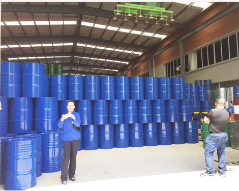 成品库现场,钢桶堆码六层高(采用机械码桶机)