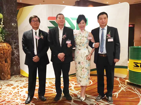 左起:台湾德奇总裁王隆兴、新加坡OSWELL总裁黄秋栋及夫人,大田包装总裁刘庆明