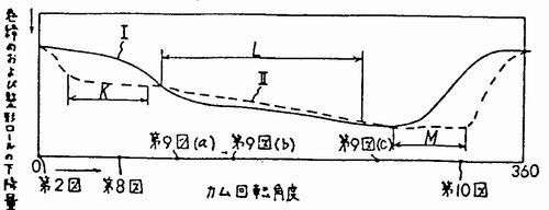 第11图表示使上述的卷边接缝形成时使端部弯曲整型挤压辊和卷边辊升降的凸轮转动角与这些辊的下降量之间的关系。