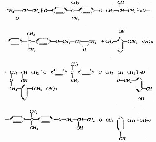 其中:R为环氧树脂分子长链。R'为多异氰酸酯的加成物。
