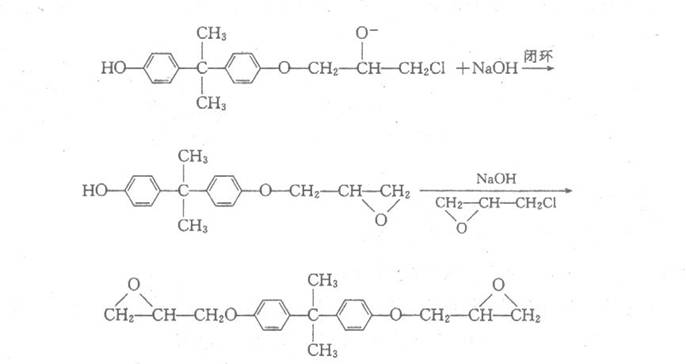 环氧树脂得到最大量应用的莫过于由环氧氯丙烷与双酚A合成的双酚A型环氧树脂,它的合成反应经历四个阶段: