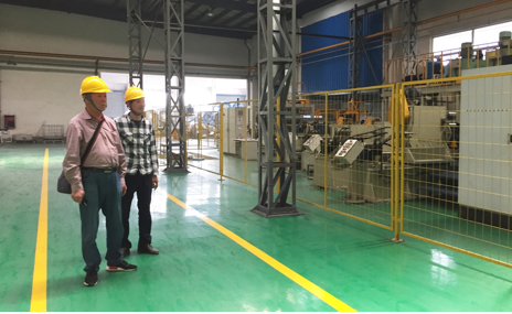 四方太仓工厂的蒋总陪张秘书长在车间参观