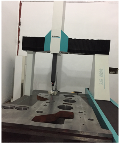 使用德国温泽三坐标测量仪正在检测印铁机机身